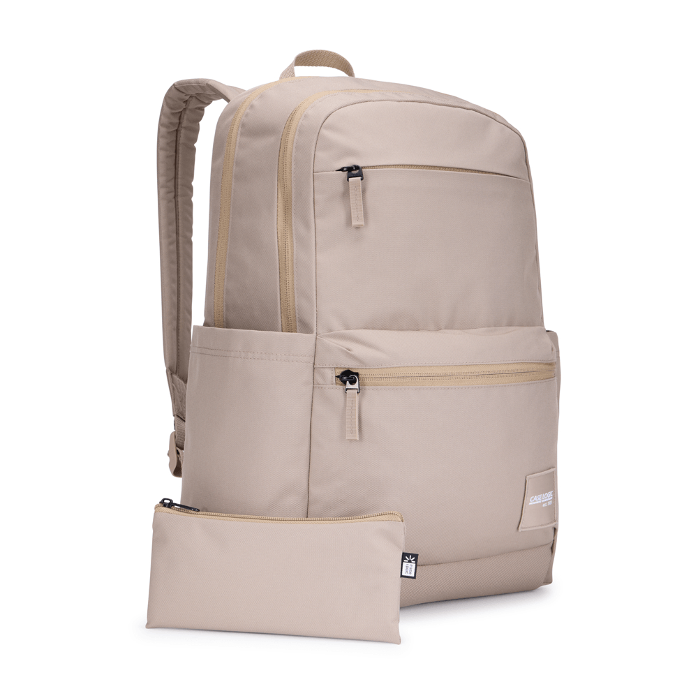 Uma mochila eficiente com capacidade de armazenamento de 26 litros, incluindo dois compartimentos grandes, bolsos frontais duplos e ampla organização, fabricada com materiais reciclados.