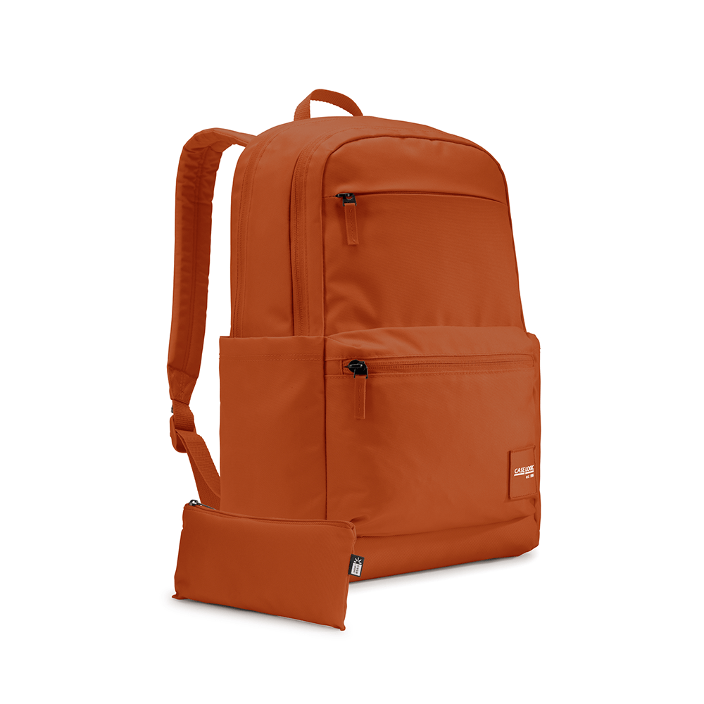 Uma mochila eficiente com capacidade de armazenamento de 26 litros, incluindo dois compartimentos grandes, bolsos frontais duplos e ampla organização, fabricada com materiais reciclados.